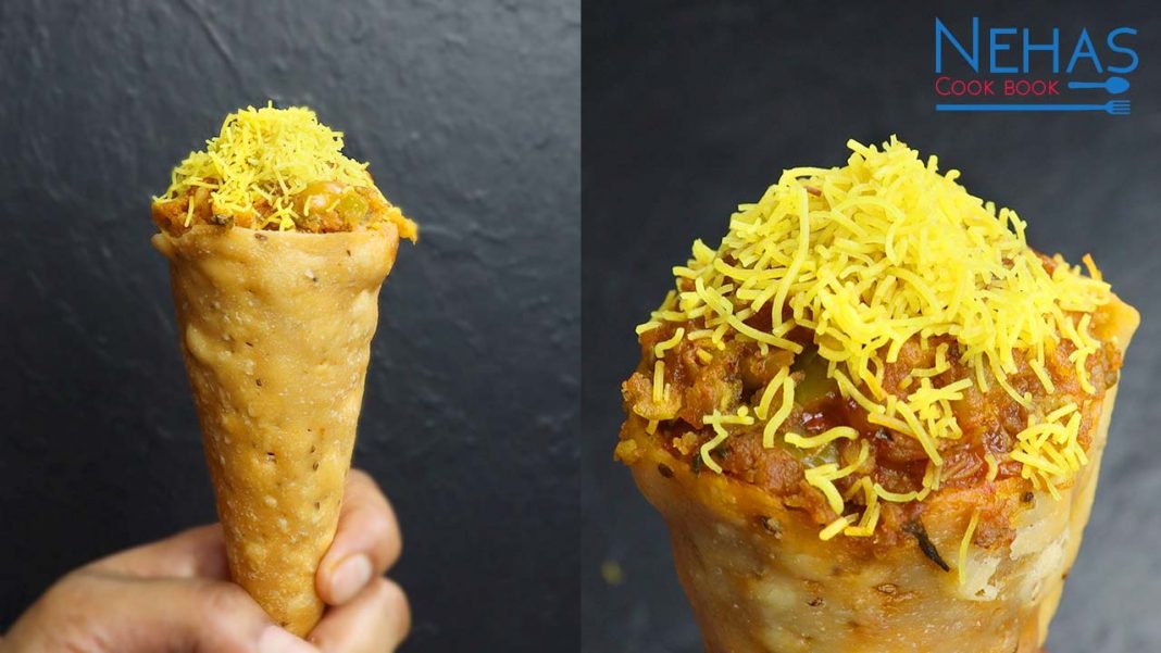 Bhaji cone recipe | how to make street style pavbhaji cone | cone chaat recipe