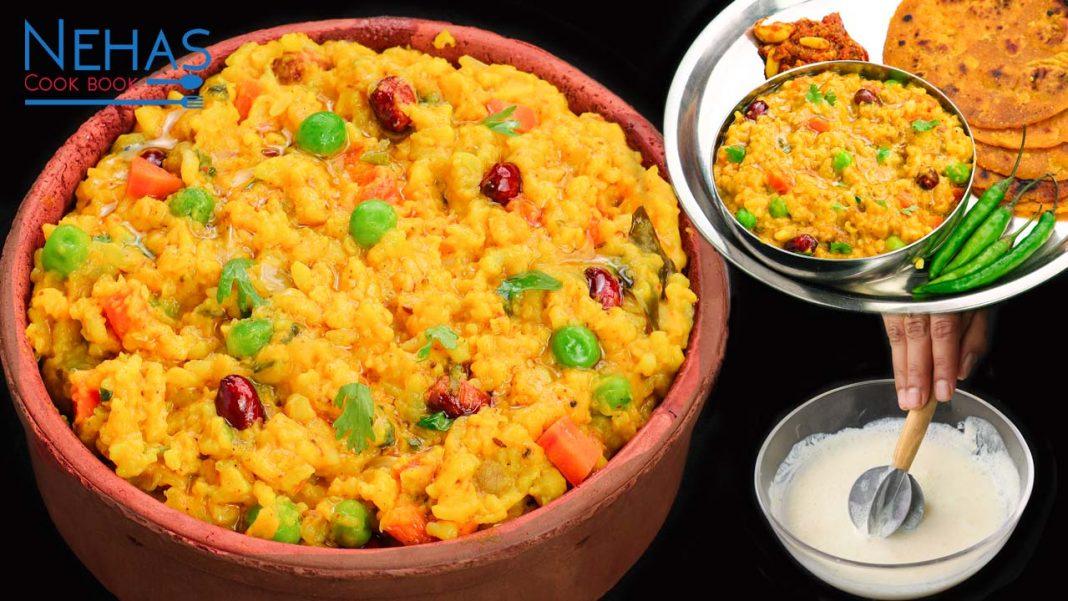 It is a traditional and unique khichdi recipe made with rice, dals, some vegetable,s and sour buttermilk. it is known for its similarities with the most famous masala khichi, but has totally different tastes and flavors. It is a healthy meal that is easy to digest and so good for the body. it is generally served for lunch/dinner with Gujarati thepla and a choice of pickle. Do try this!