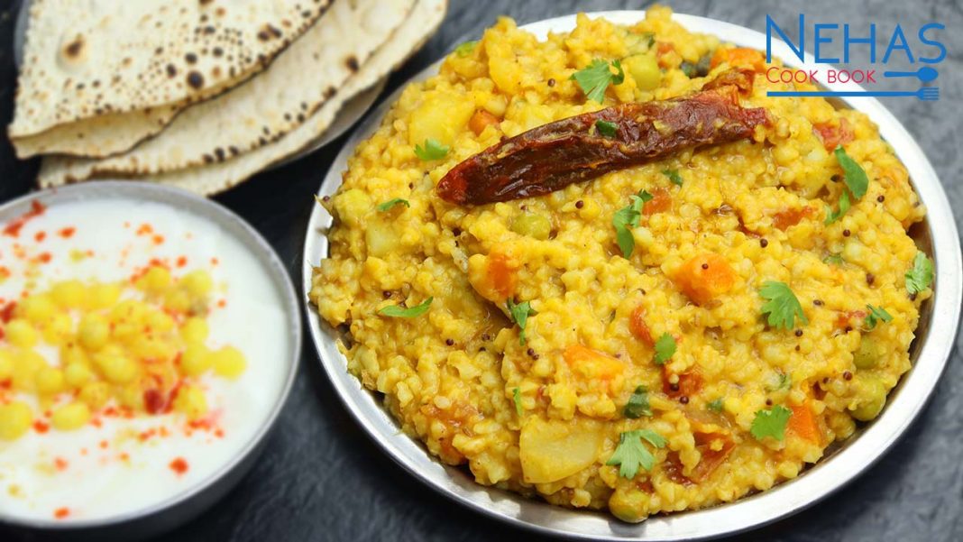 Fada ni khichdi is a healthy and easy one-pot recipe made with daliya (broken wheat), moong dal, dry spices, and vegetables. It is one of the popular Gujarati khichdi known for its nutrition, taste, and simplicity. In this khichdi, you can add your favorite available vegetables. It is light, good for digestion, and a healthy quick-fix meal for children. You can enjoy fada ni khichdi with yogurt raita, papad, and some pickle.