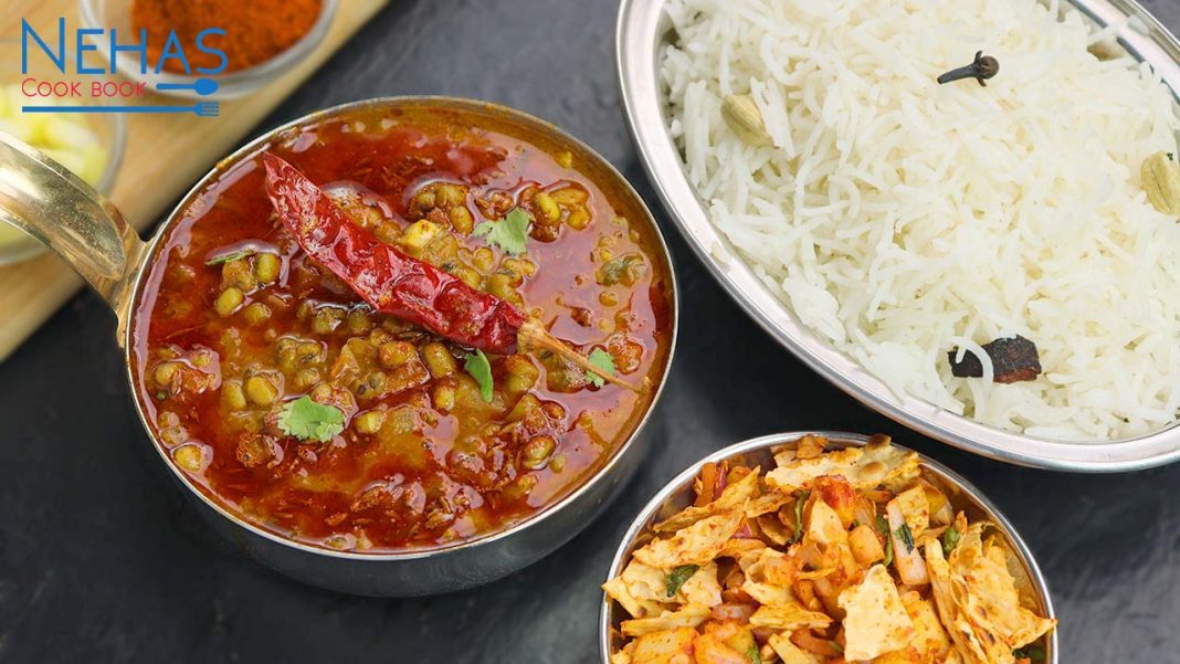 Green moong curry recipe | cooker pulao recipe | papad-keri salad recipe | mug-bhat recipe