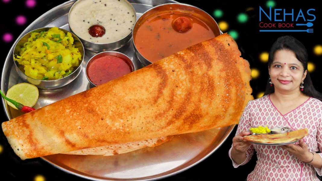 Masala dosa tastes best when served hot with spicy coconut chutney and flavorful sambar.