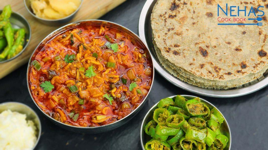 sev dungri nu shak with bajra wheat roti and marcha is easy to make kathiyawadi village thali with all the basic ingredients from your kitchen.  sev dungri nu shak is made with spring onions with a strong flavor of Garlic-Ginger. It is a simple curry recipe in which sev are added, giving the crunch to the sabzi. It is served with bajra wheat roti and tasty sambhariya marcha. This winter season does make this wonderful village-style food and enjoy its mouth-watering taste along with friends and family!