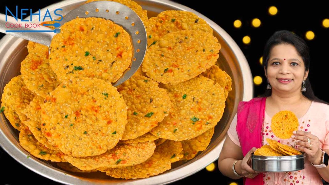 Masala Papdi is a thin and crispy deep-fried flat disc snack made with wheat flour, gram flour (besan), and spices. It has a delightful crunch and a texture similar to the popular Gujarati farsan, farsi puri, with an extended shelf life. This recipe is easy to prepare and makes for a perfect evening tea-time snack or a treat for kids.