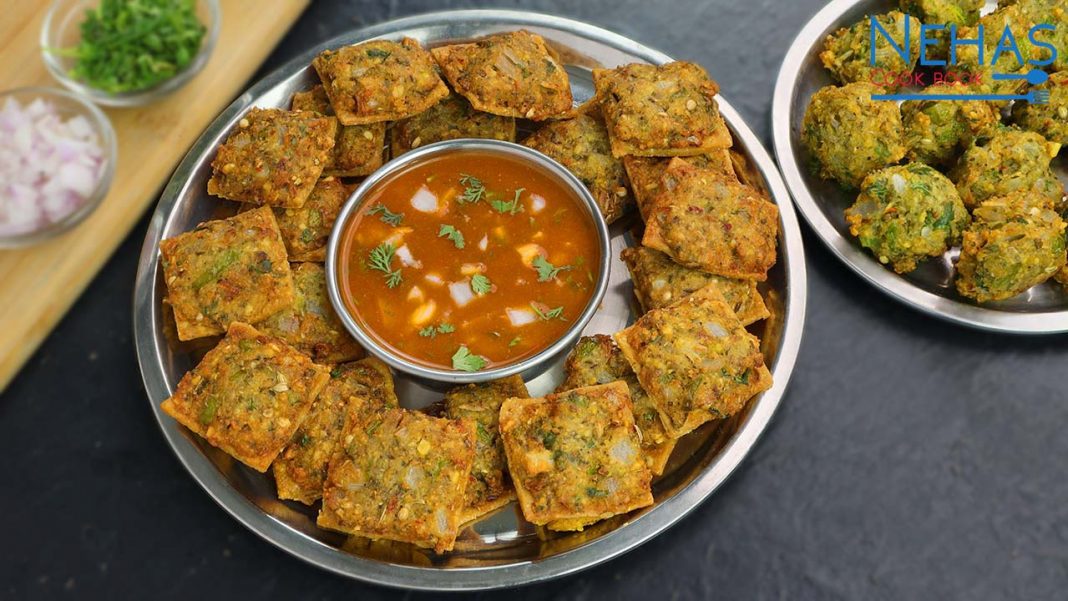 - In another batter make a bhajiya from the batter and fry it on medium heat till it becomes crispy on both sides.
