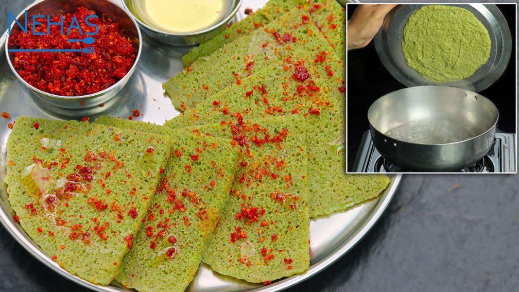 - Dal batter has to be a thick and spreading consistency hence add water in small batches while grounding the soaked moong dal beans.