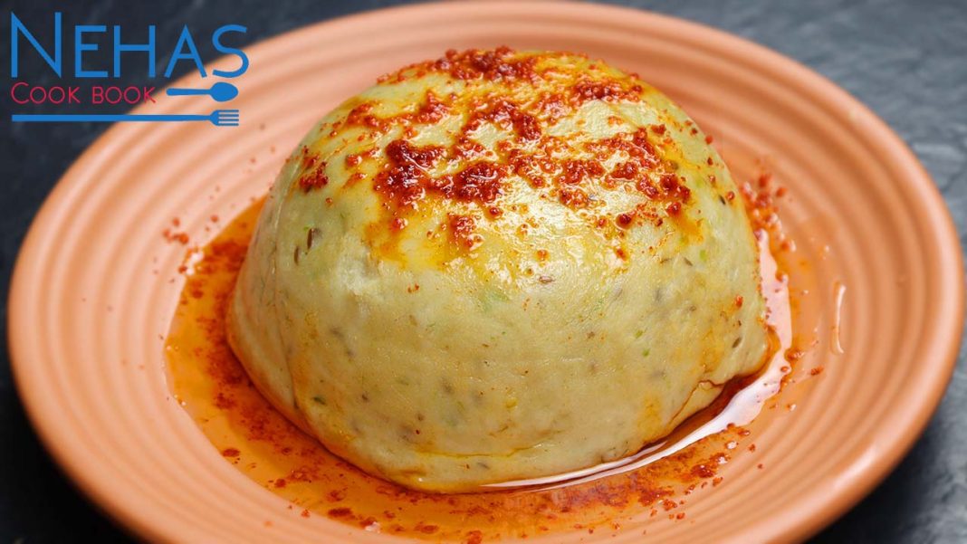 Khichu can be prepared from various types of flour like rice flour, wheat flour, jowar flour or bajri flour. This recipe uses wheat flour which is slowly added to the mix of cumin seeds, carom seeds, and green chilli in boiling water until thick like soft dough and then cooked with steam. finally, enjoy khichu topped with peanut oil and pickle masala.