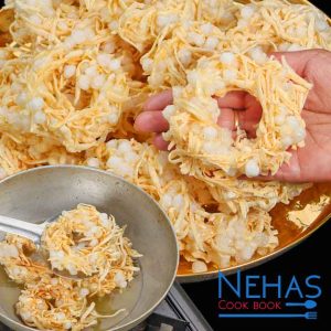 Place small portions of the mixture on a plastic sheet and shape them into vada. Make sure not to make them too thin.